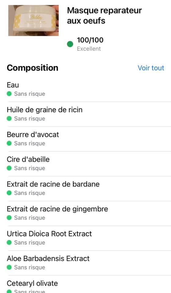 ingrédients : aqua, ricinus communis (castor) oil, persea gratissima (avocado) butter, cera alba (beeswax), arctium lappa (burdock) root extract, zingiber officinale (ginger) root extract, urtica dioica (nettle) extract, aloe barbadensis (aloe vera) extract, cetearyl olivate, sorbitan olivate, rosmarinus officinalis (rosemary) leaf extract, lactobacillus ferment, fragrance